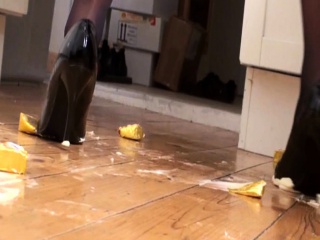 01:19 50% Girls crush food with heels