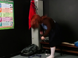 05:00 50% CFNM college redhead gives group HJ